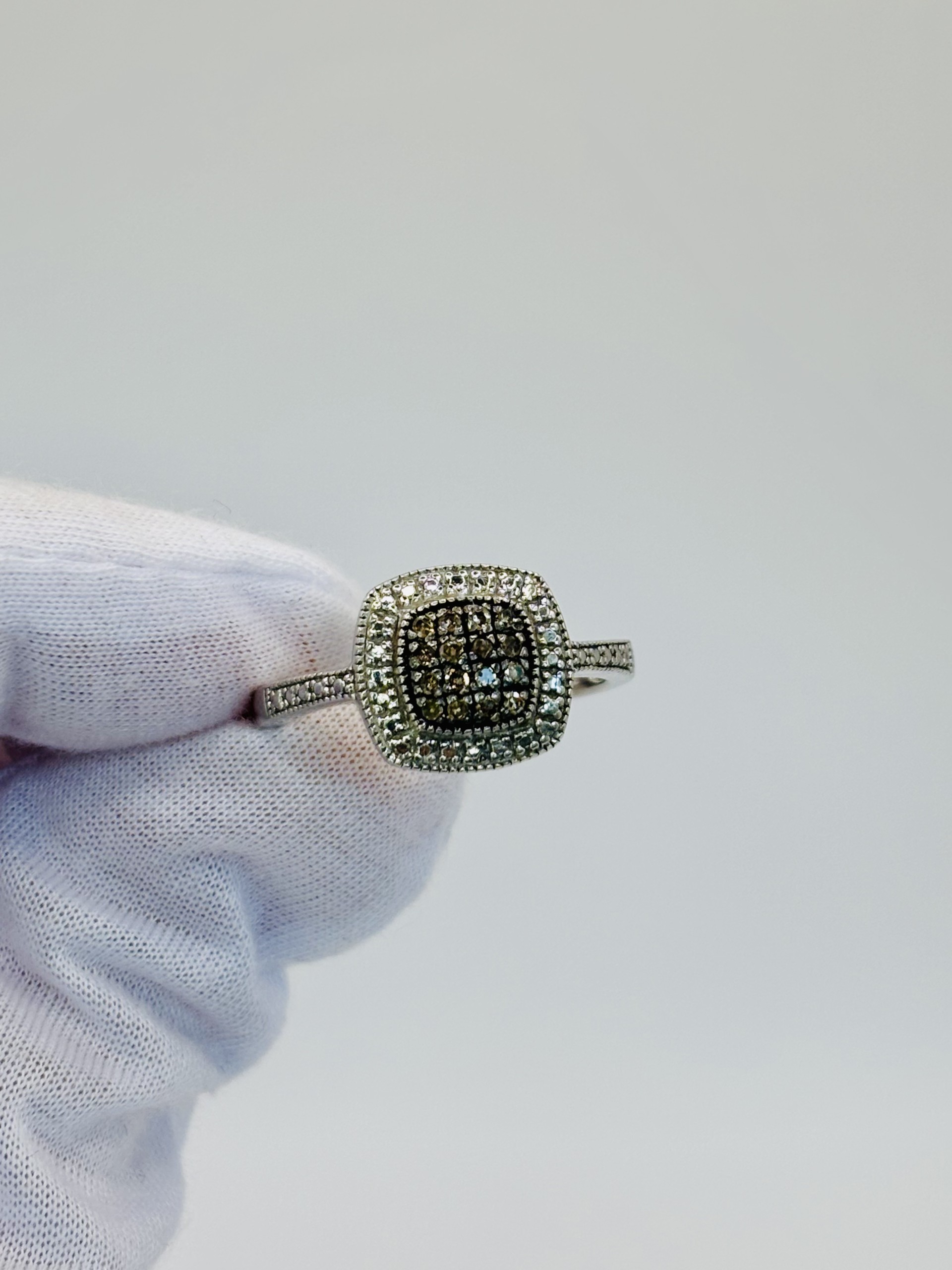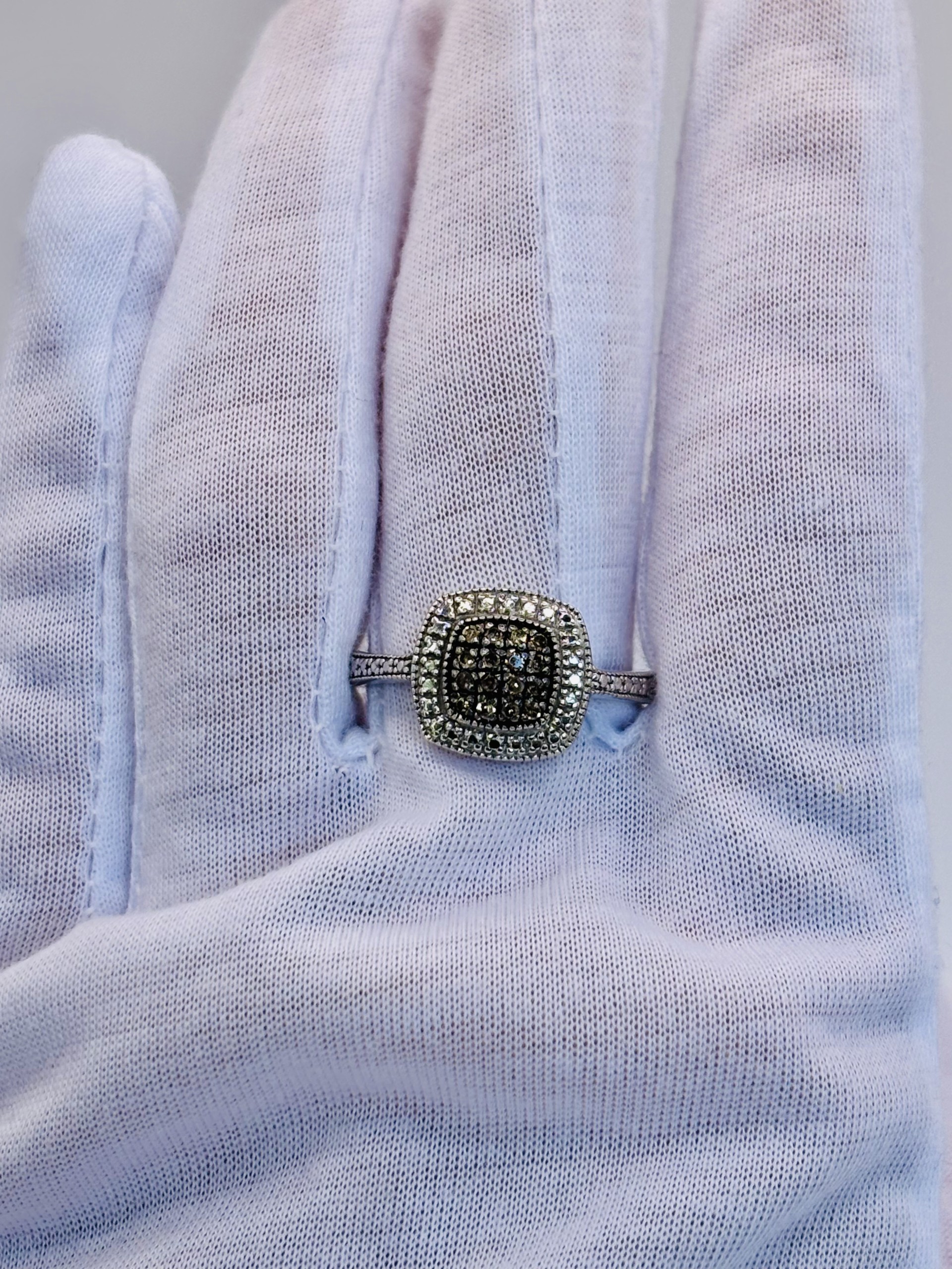 This sterling silver ring features rich chocolate diamonds that sparkle with warm, golden-brown brilliance. A halo of shimmering silver accents surrounds the center, enhancing the contrast and drawing the eye to its luxurious glow. Elegant, eye-catching, and perfect for adding a touch of indulgence to any look.