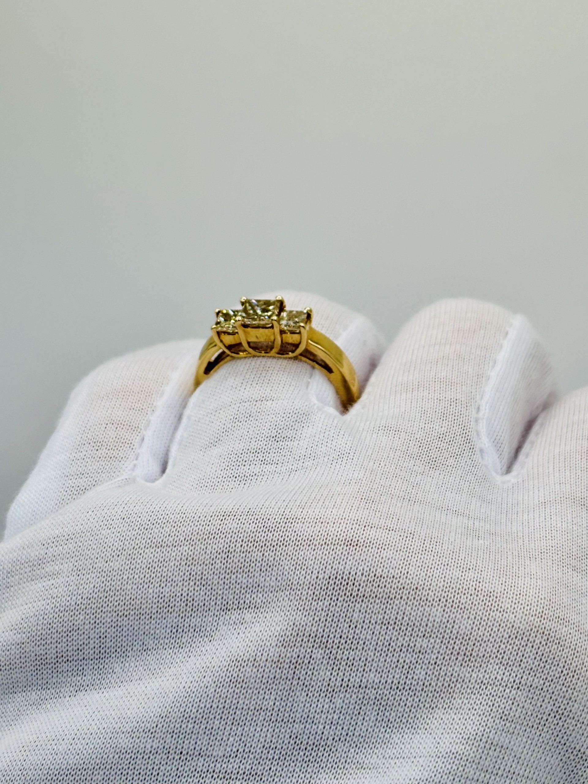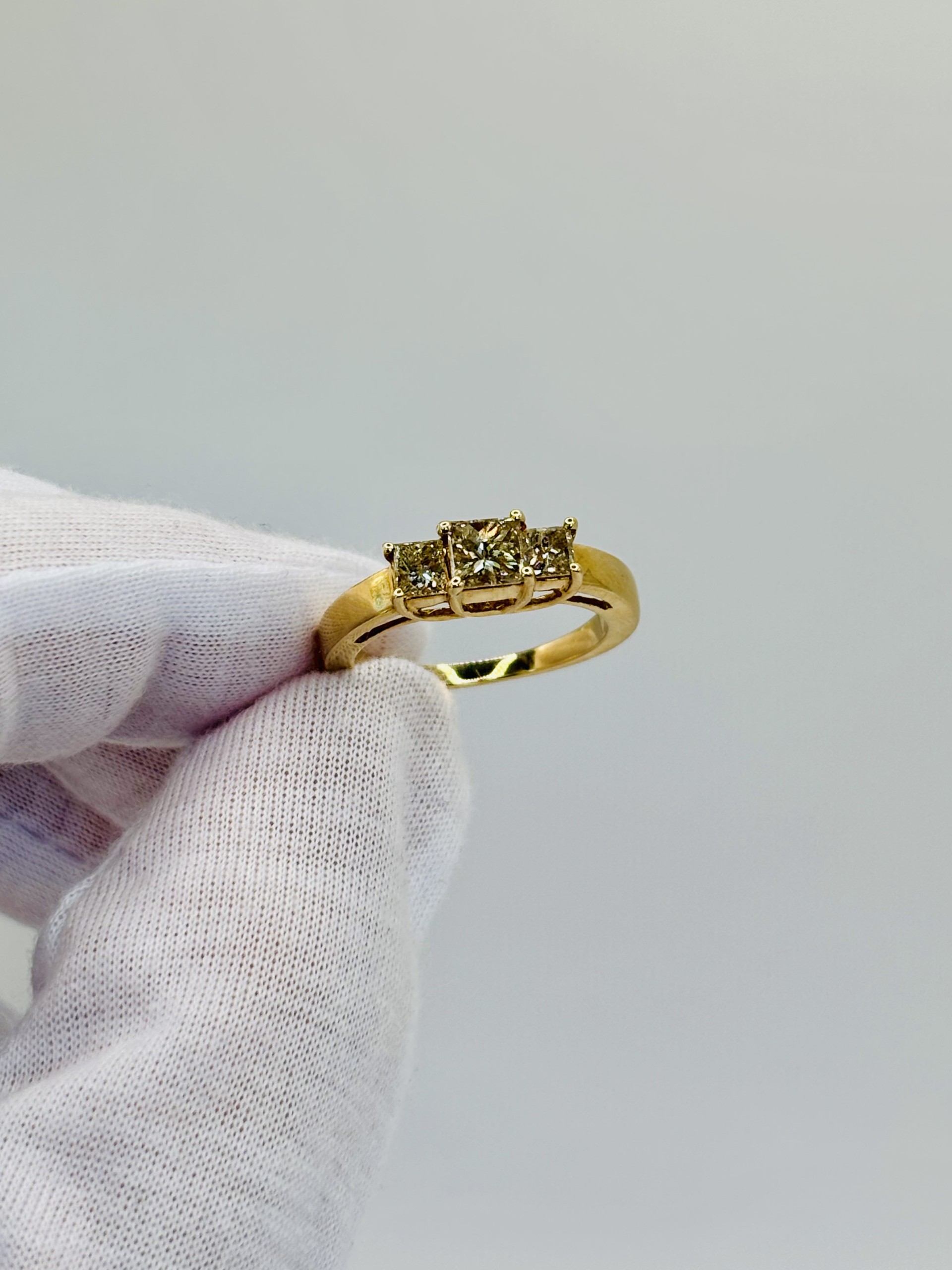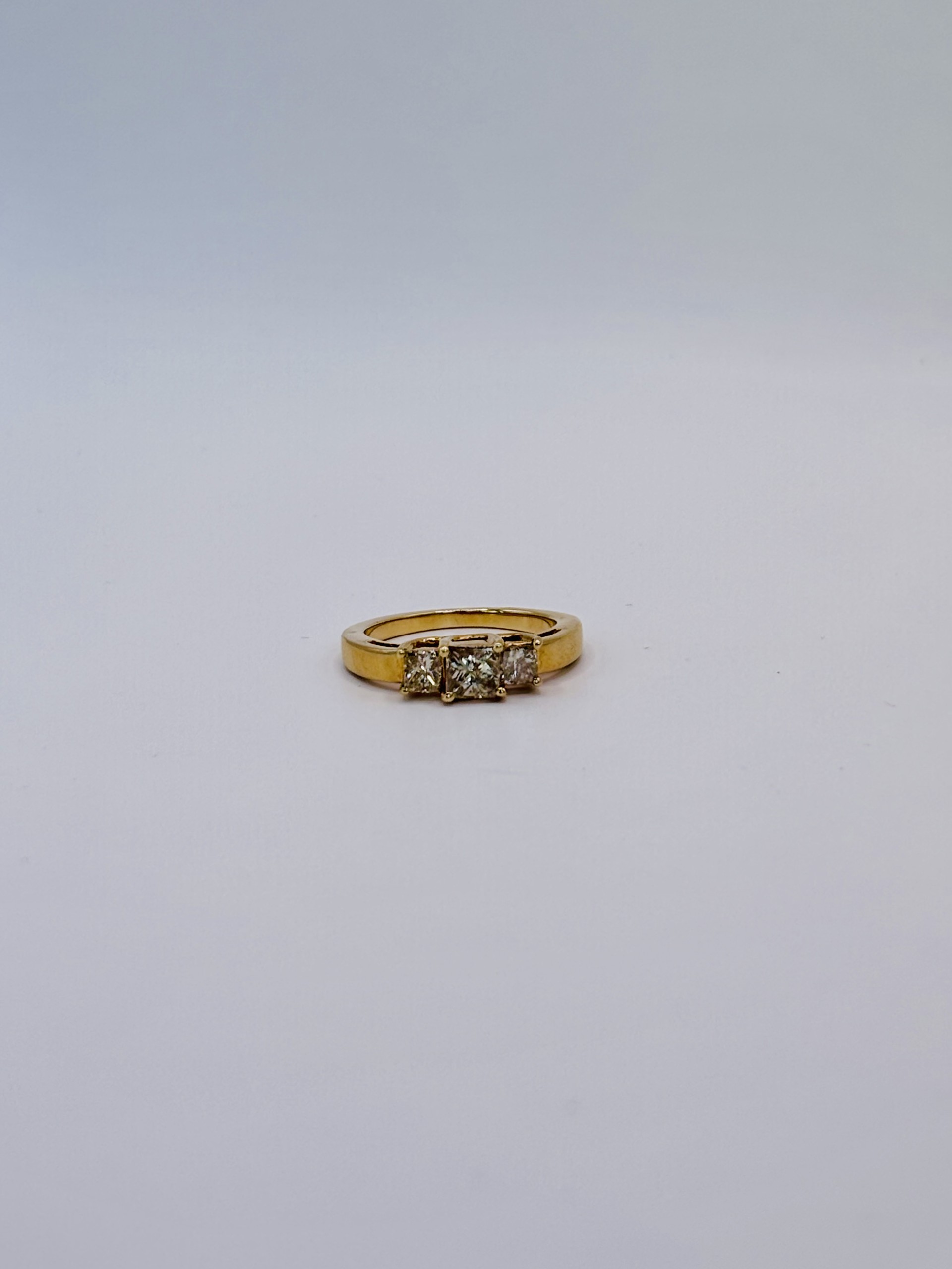 14k yellow gold 1 carat total weight of princess cut, natural diamonds. Ring size 7, sizeable.